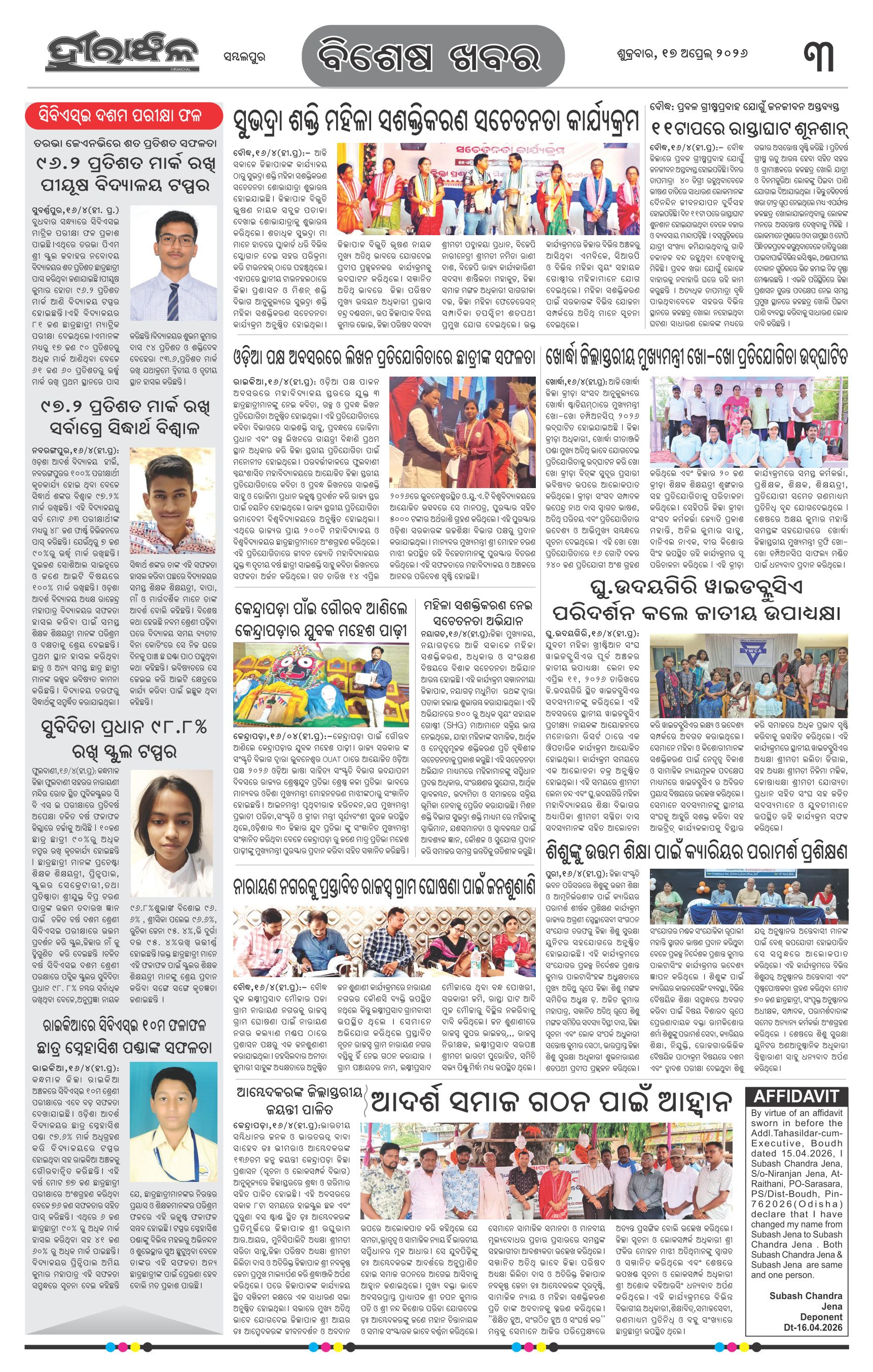 The Hiranchal Odia daily E-paper Page: 3 April 17, 2026 << First << 1 2 3 4 >> Last >> Page 1Page 2Page 3Page 4Page 5Page 6Page 7Page 8Page 9 × The Hiranchal Odia daily E-paper Page-1Page-2Page-3Page-4Page-5Page-6Page-7Page-8Page-9 << First << 3 >> Last >> Page-1Page-2Page-3Page-4Page-5Page-6Page-7Page-8Page-9 Page-3